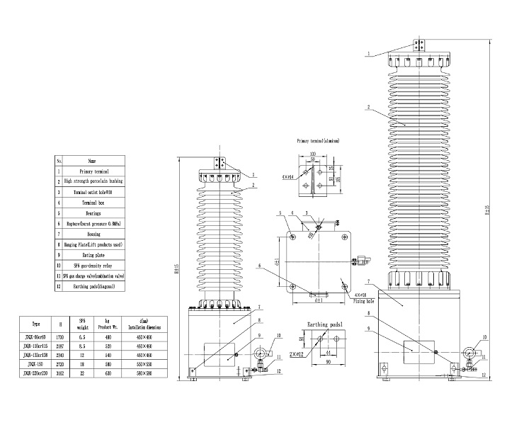 戶外單相SF6電磁式電壓互感器,在35~220kV,50或60Hz電力系統(tǒng)作電、電能測量和繼電保護用。